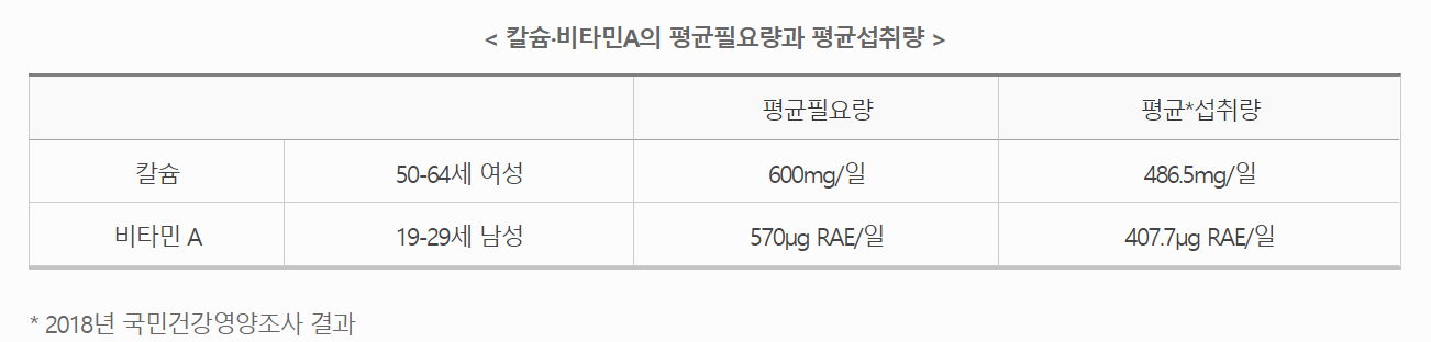 50대, 60대 여성을 기준으로 하루 평균 칼슘 필요량은 600밀리그램인데,