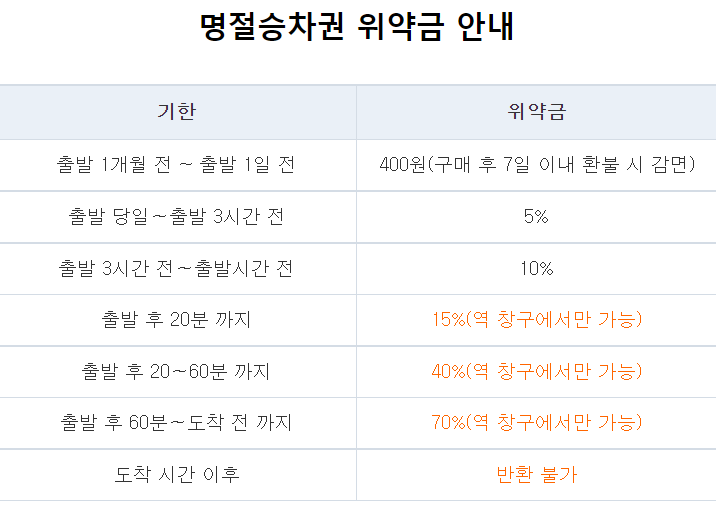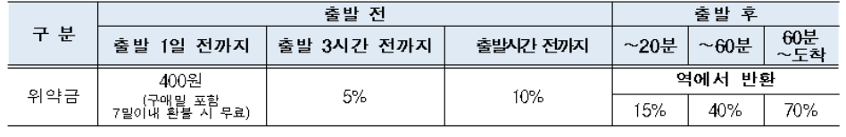 *무궁화로 이상(관강을 위한 전용 열차도 포함돼요) 모든 기차표에 해당됩니다.