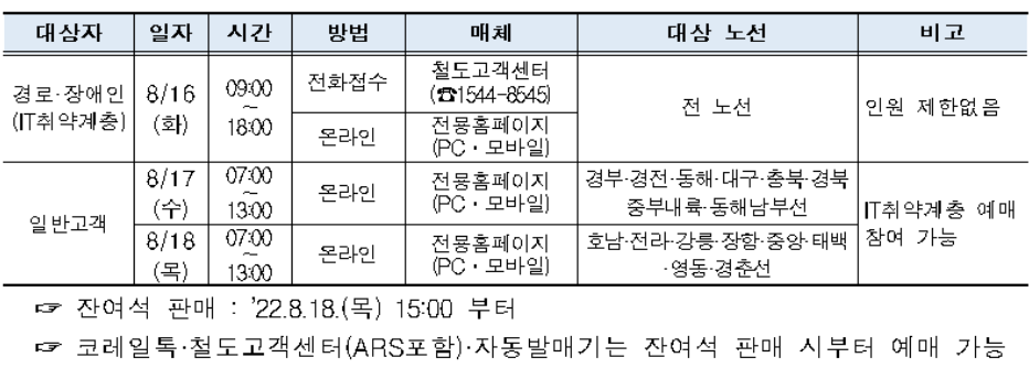 추석 승차권 예매 안내드립니다.