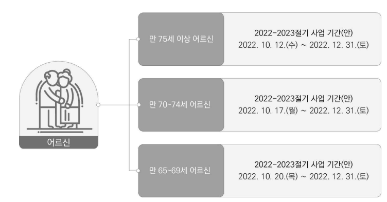 | 만 65세~69세 어르신 | 2022. 10. 20(목) ~ 2022. 12. 31(토) |