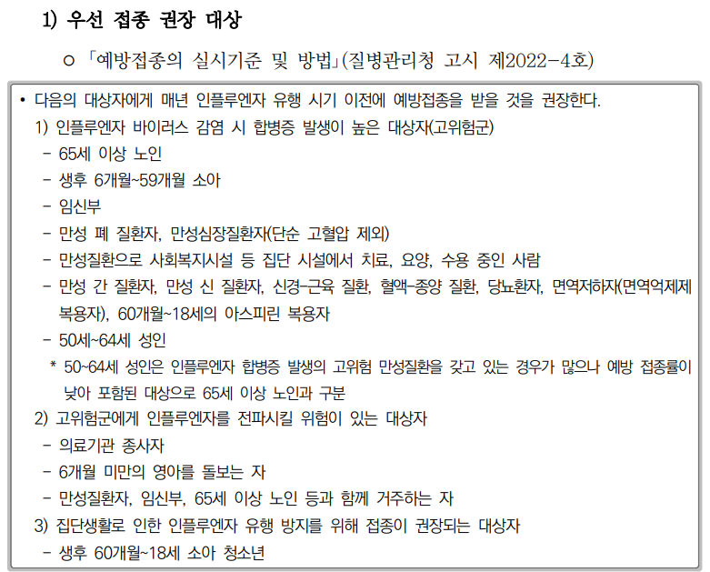 1. 우선 접종 권장 대상자