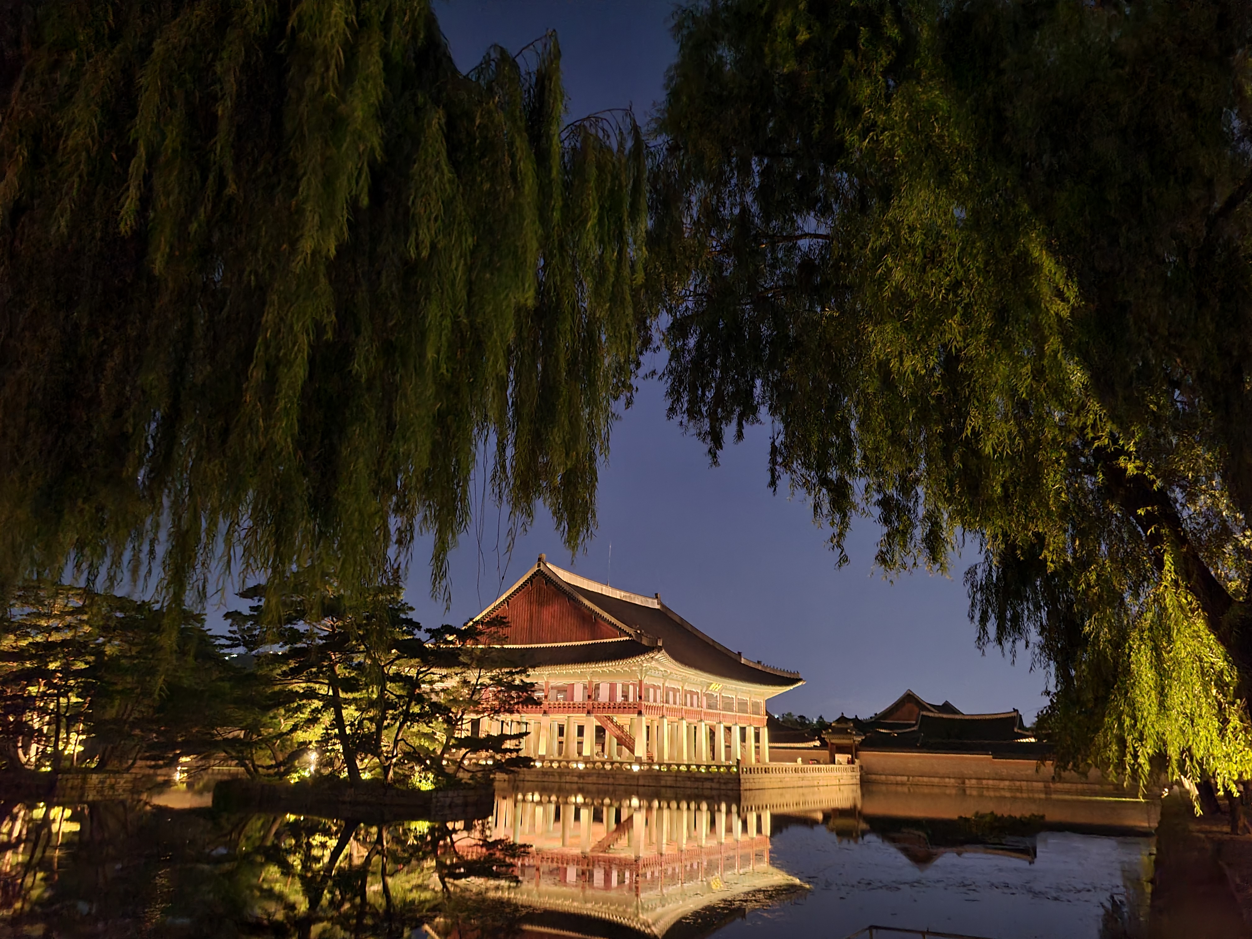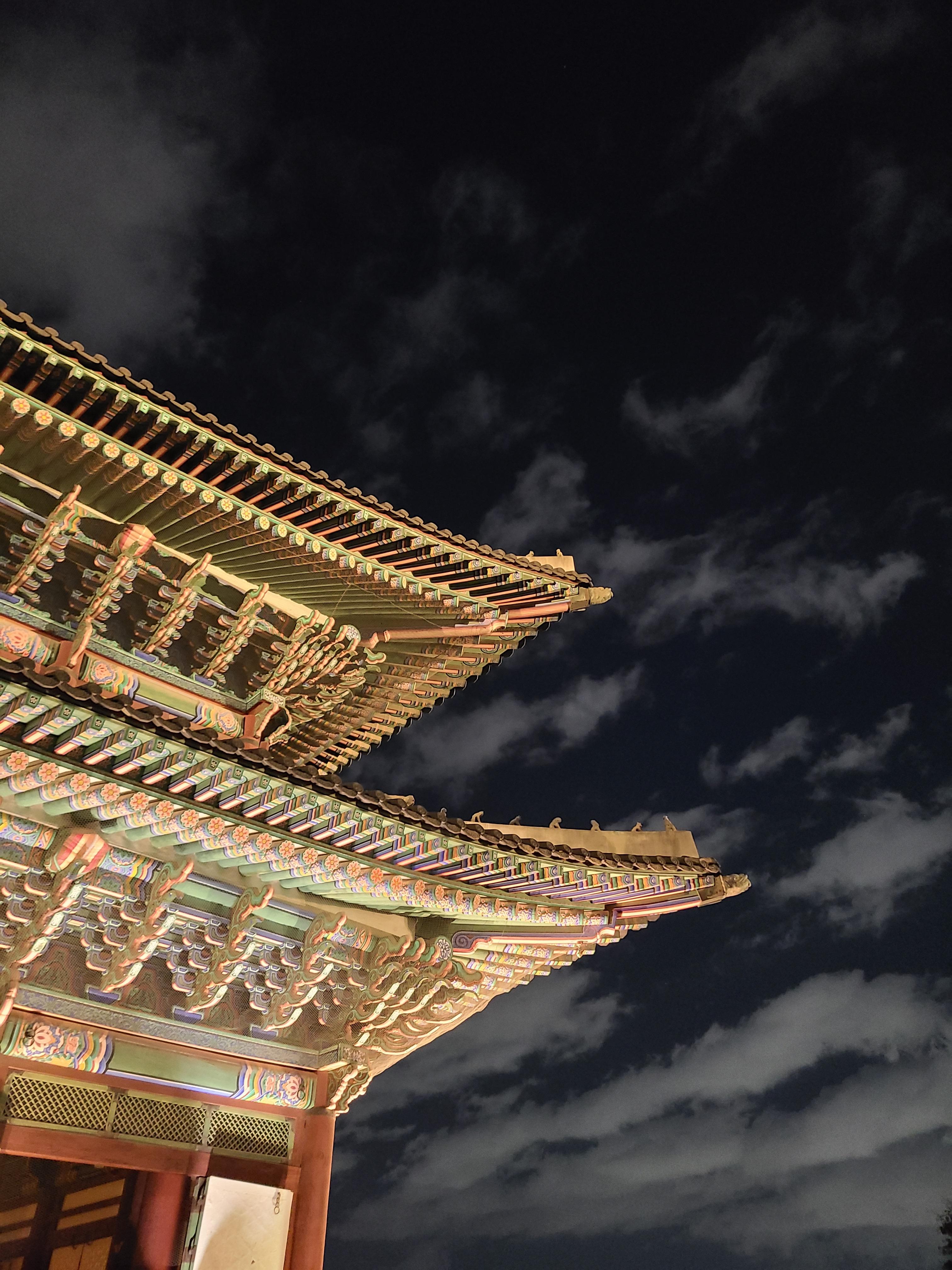 이렇게 사진을 촬영하게 되면 근정전이 더욱 입체적으로 사진에 담을 수 있고 근정전의 옆모습과 뒷 기와까지 한번에 사진에 담을 수 있습니다. 정면에 사람들이 많이 몰린 반면 45도로 볼 수 있는 곳은 사람이 없으니까 경복궁 야간 관람 꿀팁 꼭 챙겨가세요!