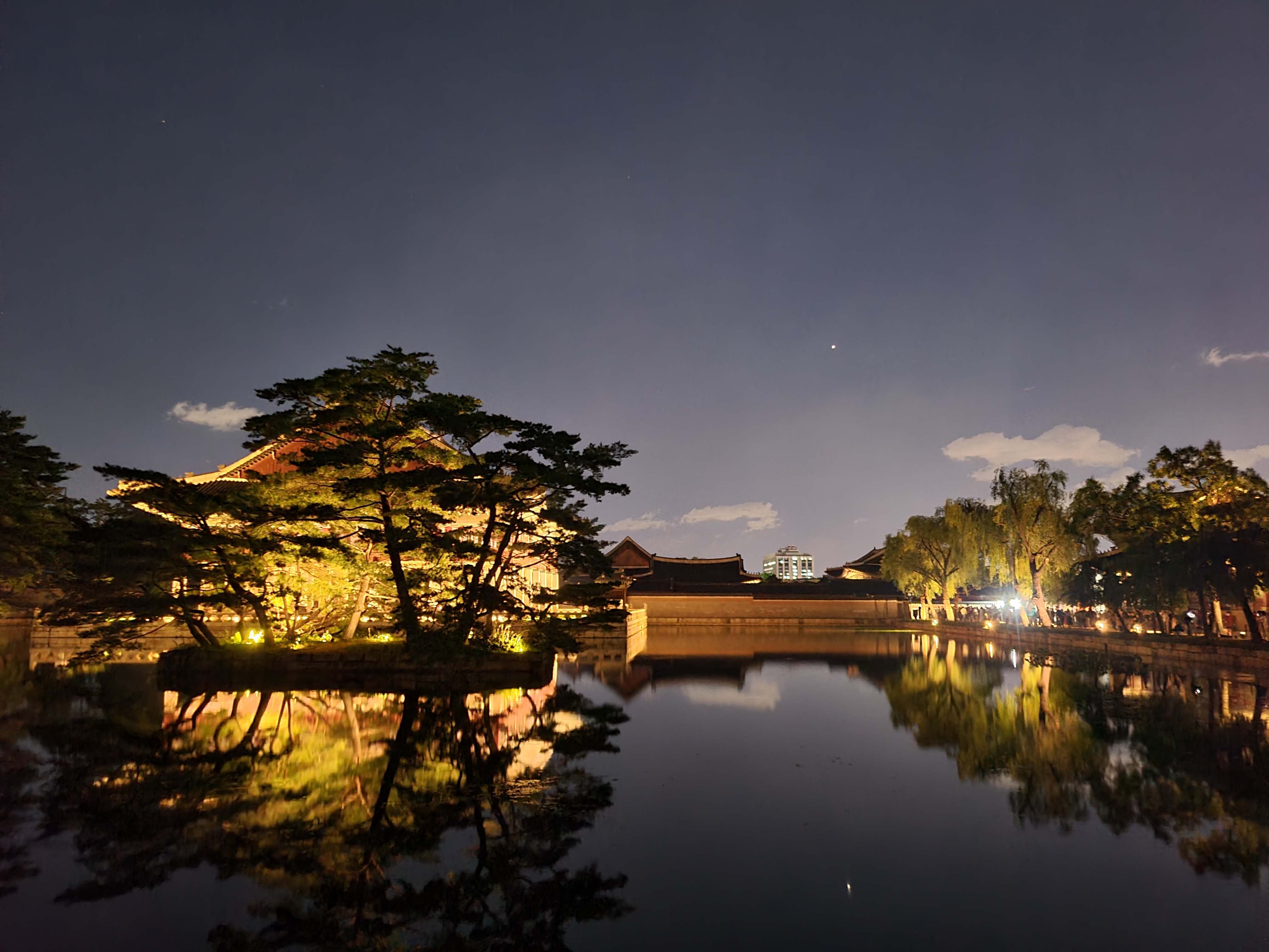 어떻나요? 정말 멋지죠? 호수에 비친 경회루의 대칭모습. 정말 바닥에 거울을 깔아 놓은 느낌입니다. 많은 사람들이 경회루를 배경으로 사진을 찍었는데 연인과 함께 하거나, 썸을 타고 있는 분과 가면 한층 더 감정의 깊이가 커질 것이라 확신합니다. 이렇게 아름다운 경회루는 임진왜란 때 기둥만 빼고 전부 불탔으나 고종이 다시 복원을 했다고 합니다. 처음의 경회루는 연못도 작았으나 연못을 더 넓히고 연못 중간엔 나무를 심을 수 있는 작은 섬도 만들어 놨습니다. 정말 아름다운 모습이니 꼭 놓치지 마세요.