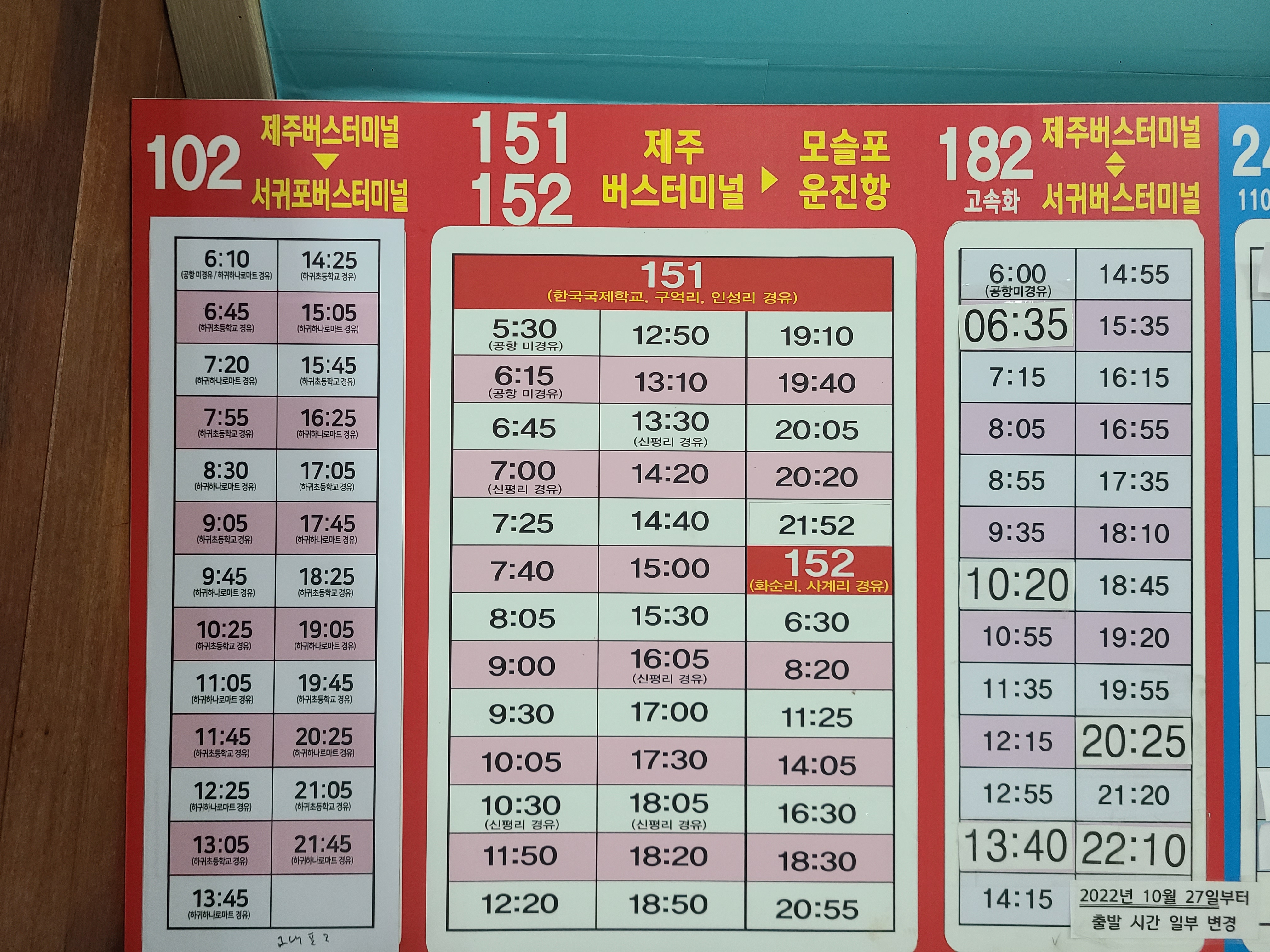 몇 년간 개편으로 제주 시외버스가 체계화 되었습니다. 시간표를 잘 확인하시고 즐거운 여행되시길 소망합니다.