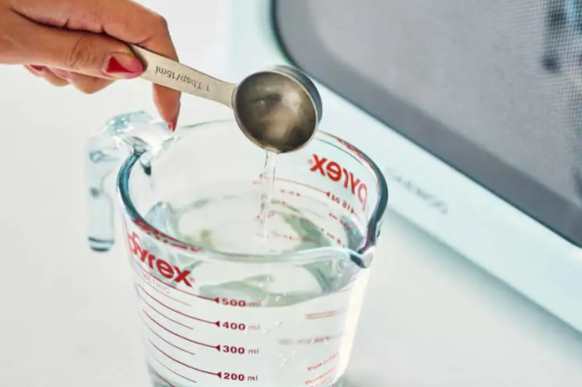 - 물과 식초 계량 : 전자레인지용 계량컵이나 볼에 물 2컵, 식초 2큰술 정도를 계량합니다.