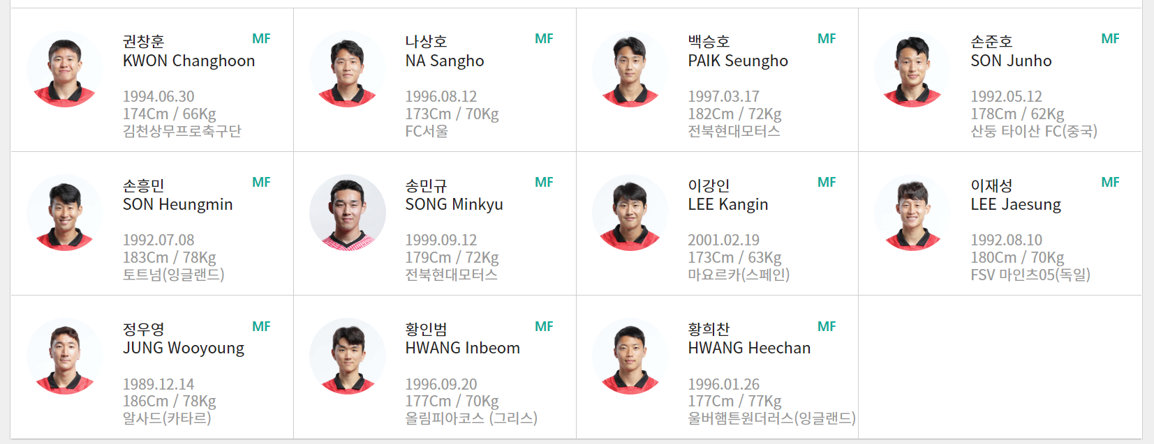 대한민국 축구대표팀 명단