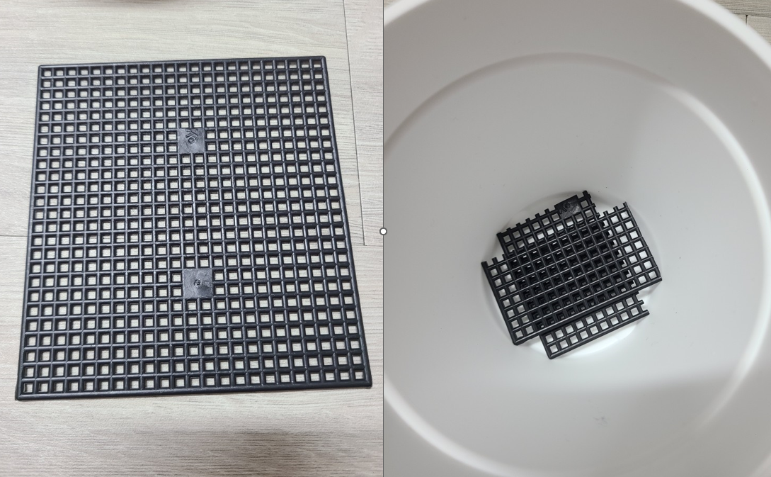 배수망이 없으면 흙이나 작은 돌들이 화분의 배수구멍으로 다 빠져버립니다. 화분에 물을 줬는데 흙이 많이 빠져버리면 곤란하겠죠? 플라스틱 망을 적당한 크기로 깔아주세요. 만약 배수망이 없으면 양파망을 잘라서 사용해 주면 됩니다.